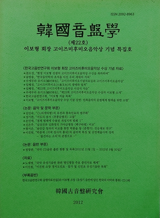 [Çѱ¹À½¹ÝÇÐ Á¦22È£](¼¿ï:Çѱ¹°íÀ½¹Ý¿¬±¸È¸, 2012³â) ÃÑ 298ÂÊ.