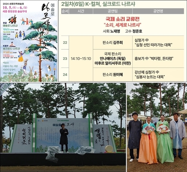 2024³â 10¿ù 6ÀÏ ¼¼Á¾Áß¾Ó°ø¿ø ¼Ö½£¿¡¼ ¿¸° ¡®¼¼Á¾¹ÎÁ·¿¹¼úÁ¦ – ¼Ò¸® ¼¼°è·Î ³ª¸£»þ¡¯ÀÇ ÆÇ¼Ò¸® °ø¿¬À» ±¹¾ÇÀ½¹Ý¹Ú¹°°ü ³ëÀç¸í °üÀåÀÌ ±âȹ¡¤»çȸ¡¤Çؼ³À» ´ã´çÇÔ.